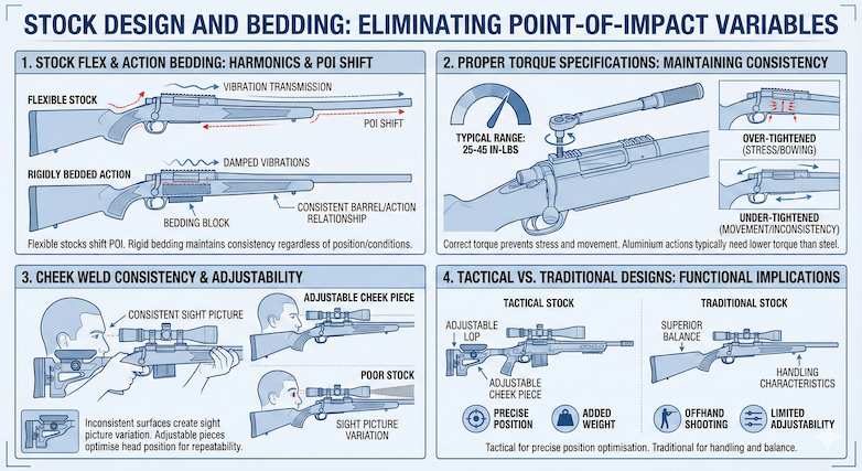 Cheek weld consistency and stock design impact shooting technique repeatability more significantly than many shooters realise. Stocks with inconsistent cheek weld surfaces create sight picture variations that affect accuracy regardless of mechanical precision. Adjustable cheek pieces enable optimising head position for consistent sight picture, whilst poorly designed stocks may require aftermarket modifications to achieve professional-grade shooting position repeatability.